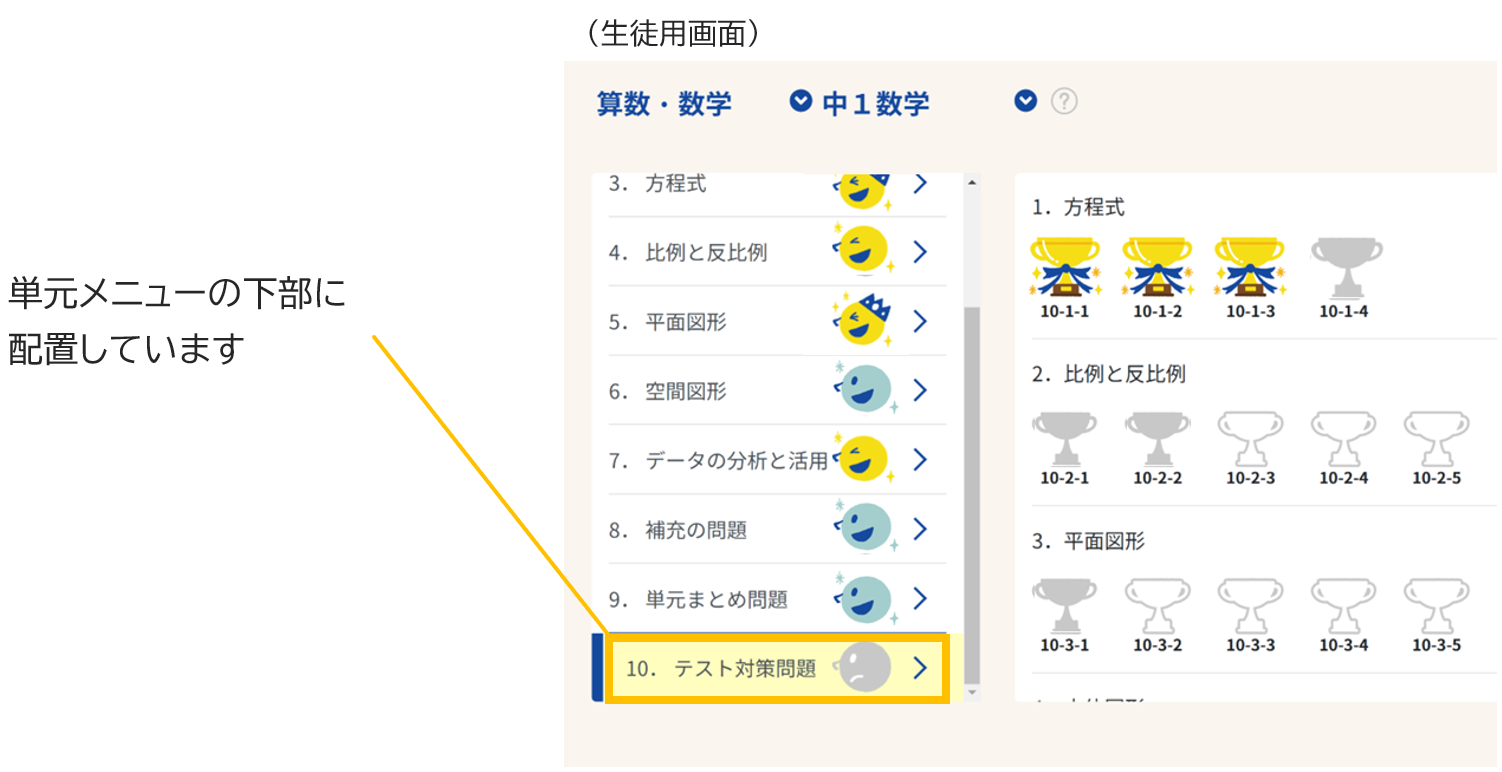 学年末テストをはじめとする定期試験前にはテスト対策問題に取り組むことで、より実践的な問題でテストに向けて準備ができます。