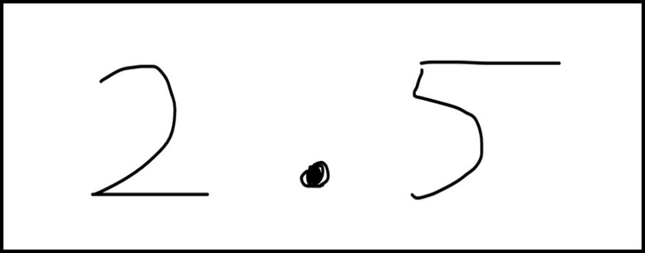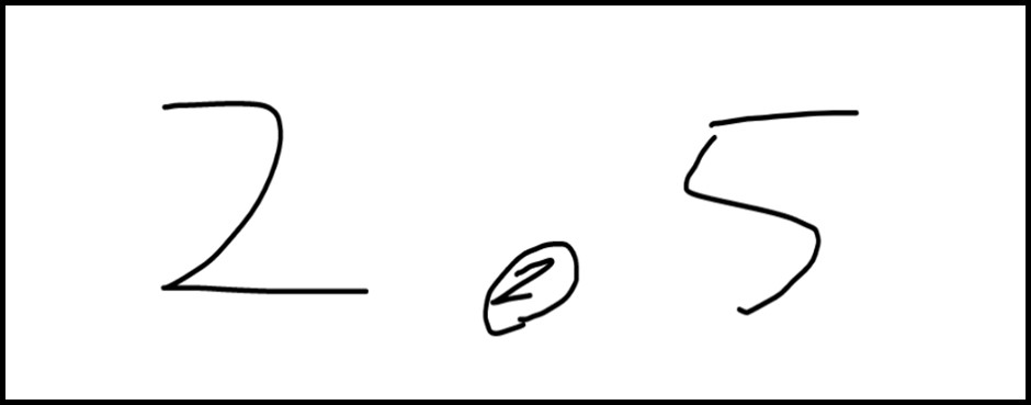 小数点 点(てん)は一筆(ひとふで)でぬりつぶすか、右下(みぎした)に向(む)けて短(みじか)く打(う)ちましょう。 悪わるい例れい 205など、別(べつ)の文字(もじ)として認識(にんしき)されてしまいます。