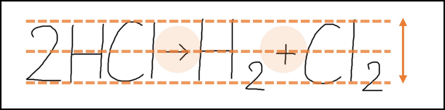 式を表す「+」「→」は、式全体の高さのできるだけ中央に書きましょう。